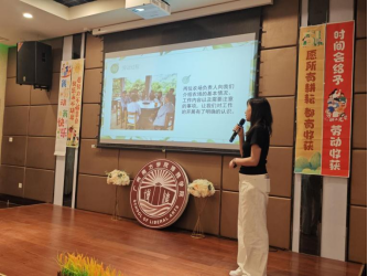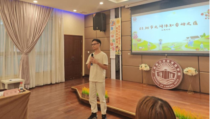 萤火虫助学社社长王日健同学则为讲述了他在社团的志愿经历,他强调志愿服务的意义在于默默奉献,传递温暖与关爱。他认为,劳动虽累,但看到受助者的笑容便是最大的慰藉。