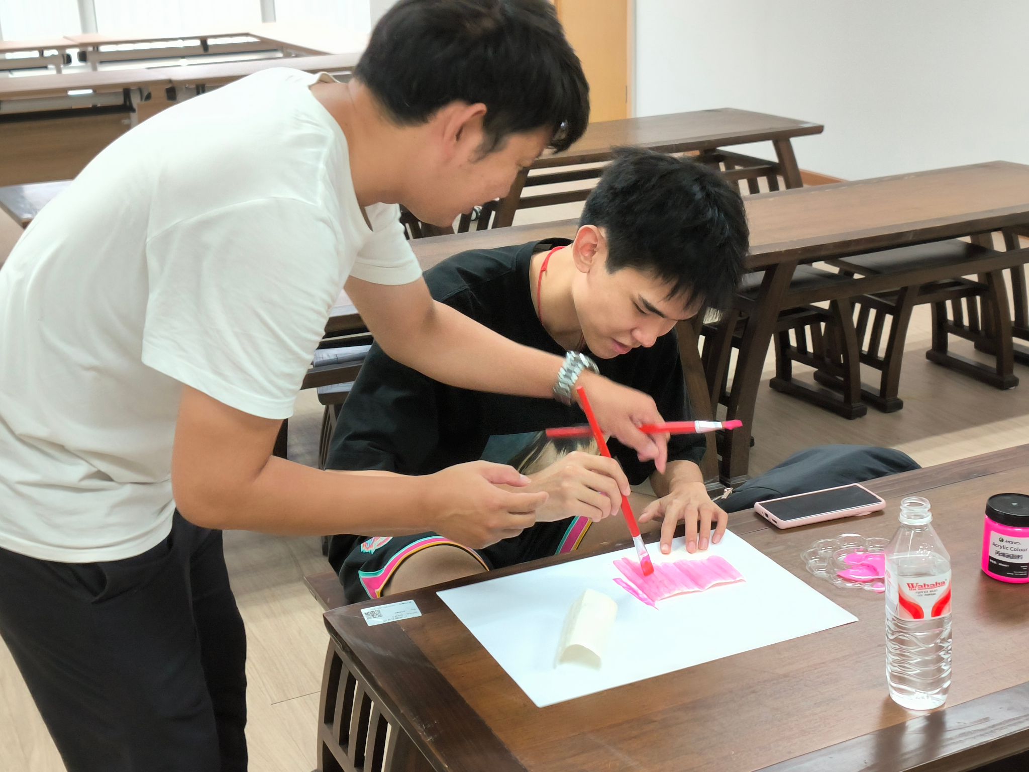 作为广东省省级非物质文化遗产,丰顺纸花曾留下“管理员误将展品当作真花浇水”的趣闻,足见其仿真度之高。此次传习班,以完整工序教学为核心,让学生从原料认知到成品组装,逐步掌握这项古老技艺的精髓。课堂上,传承人张伟林首先详解用料的考究之道——从制作花瓣的台湾优质通草纸,到塑形用的铜丝、铁丝等,每一种材料的特性与选用技巧都被细细拆解。